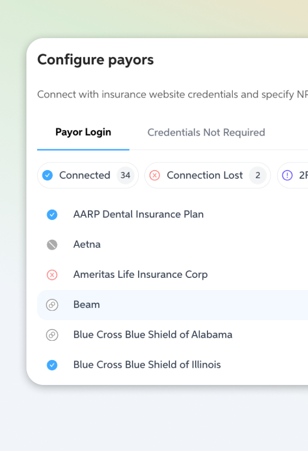 Precheck™ connects with your PMS in a way that protects and preserves your patient data, and works ethically with 300-plus payors and four clearinghouses to verify benefits.