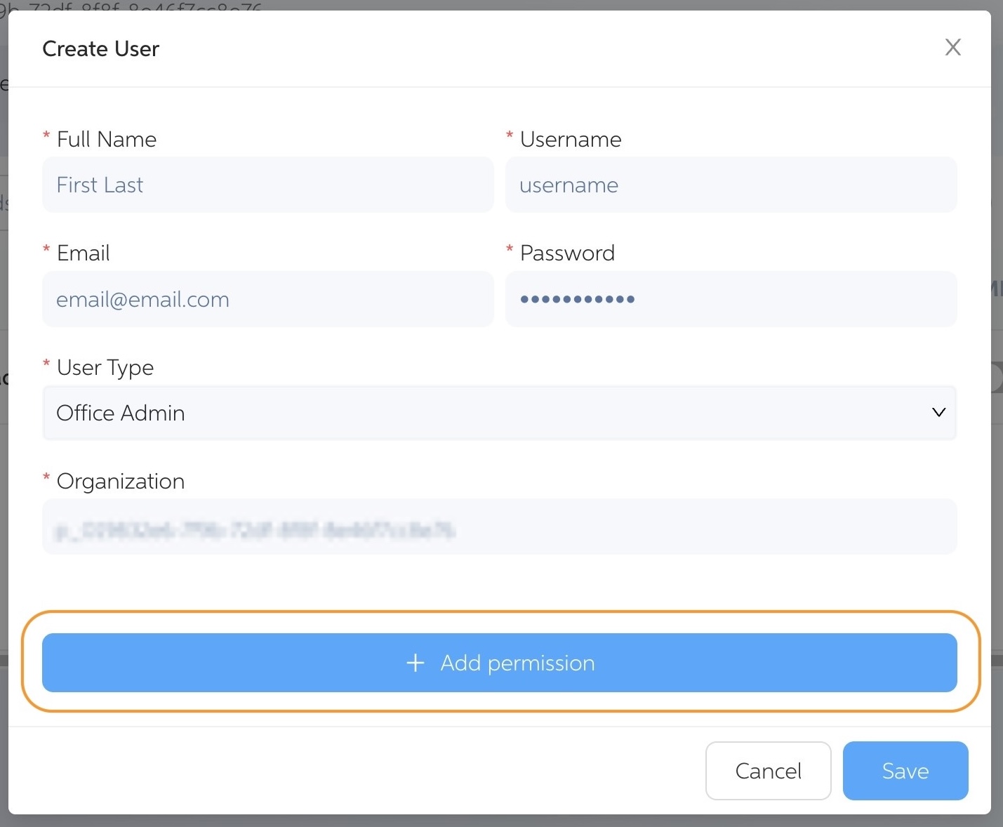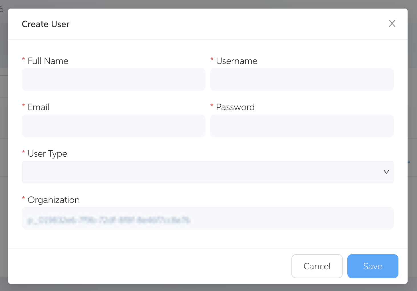 Complete all required fields to set up the new user account.