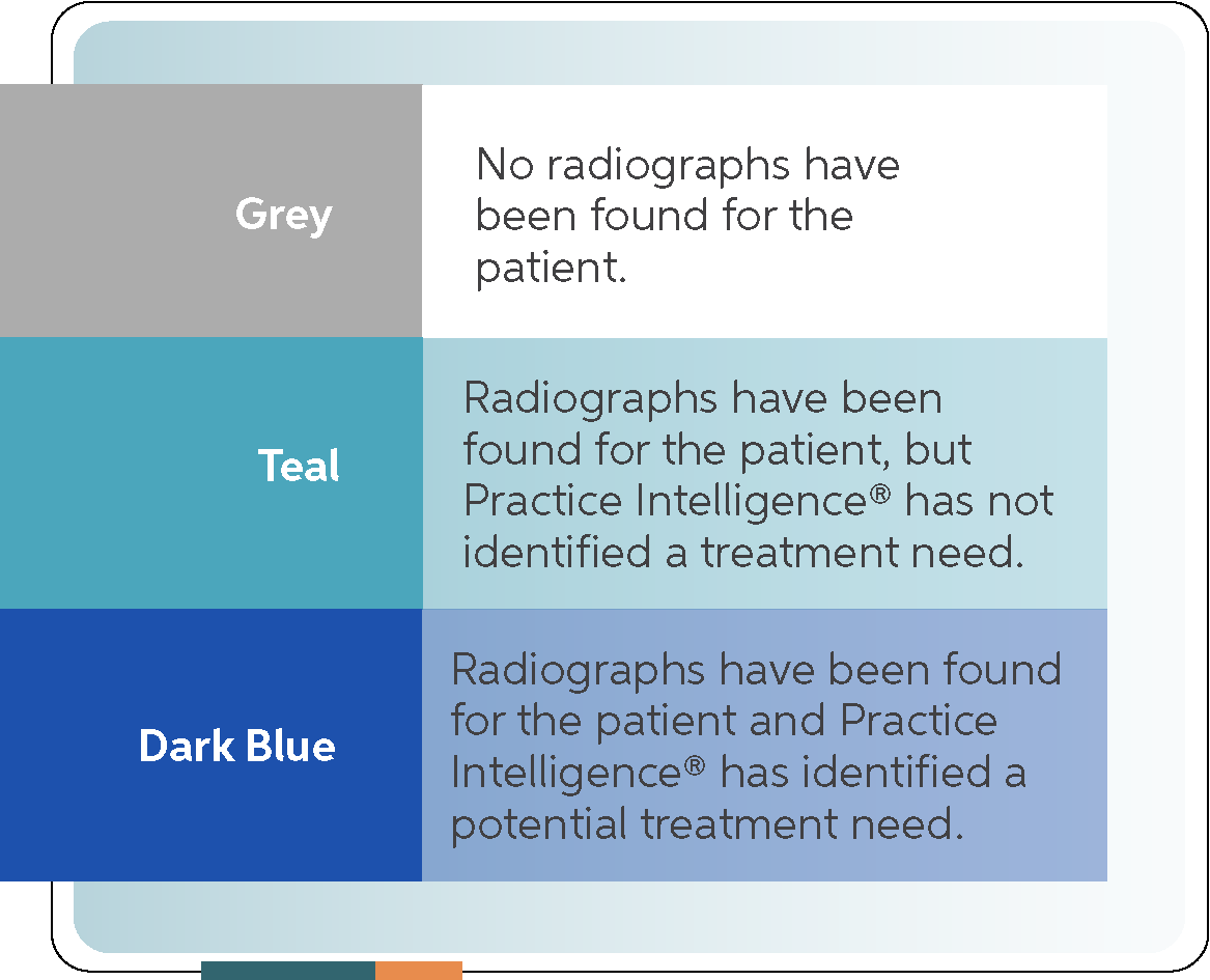 You’ll want to focus on the dark blue appointments because those patients have AI-detected dental conditions in their X-rays and are, therefore, potential candidates for treatment.