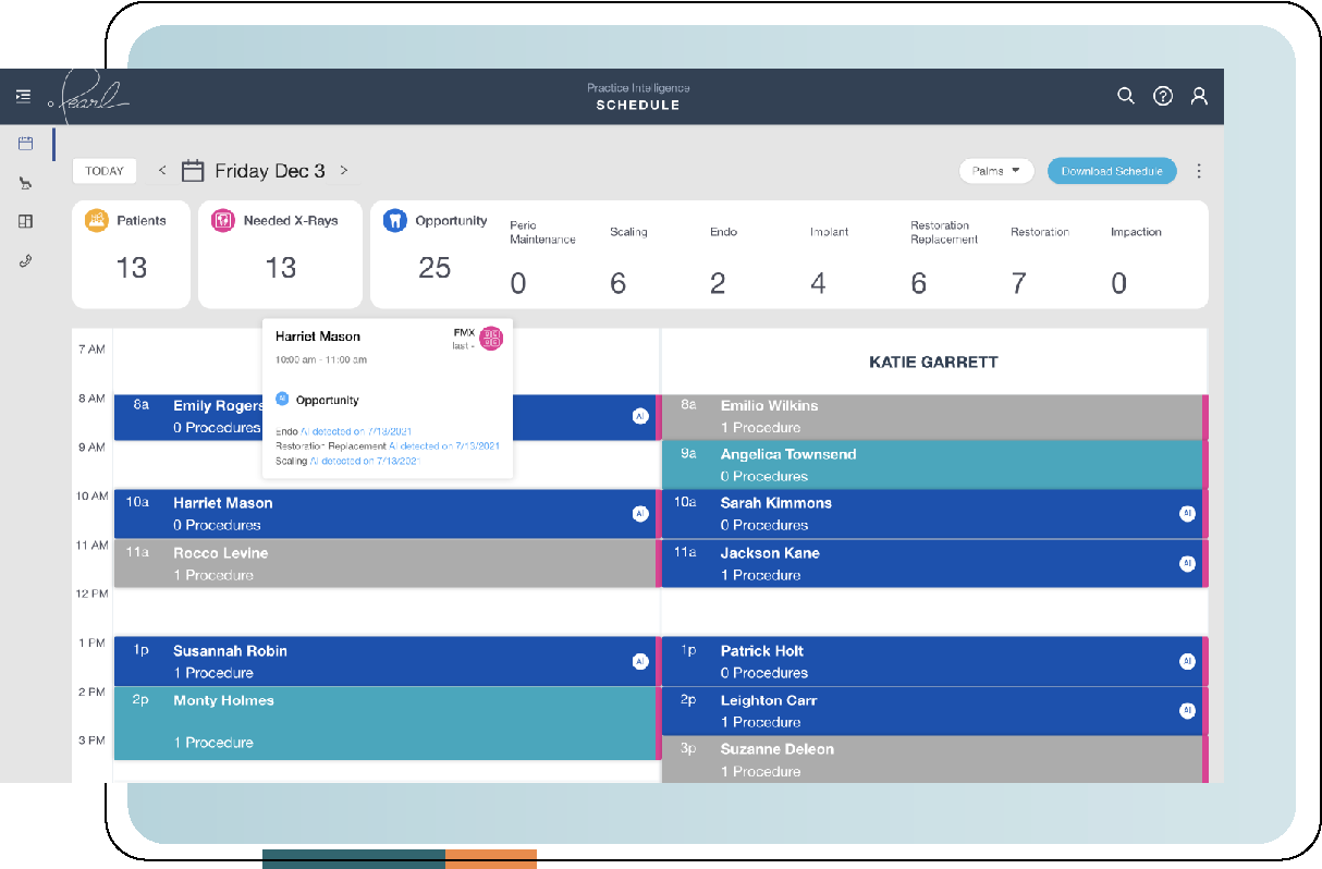 Pull up the Schedule and review opportunities and AI detections in your morning huddle. Upon agreement with the AI detections, everyone on the team will be ready to support the treatment planning effort once the patient is in the chair.
