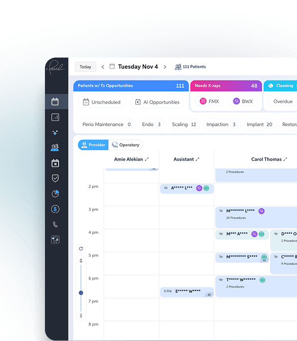 Pearl helps your front desk identify and prioritize patients with urgent, high-value, and overdue treatment needs so teams fill schedules efficiently and effectively.