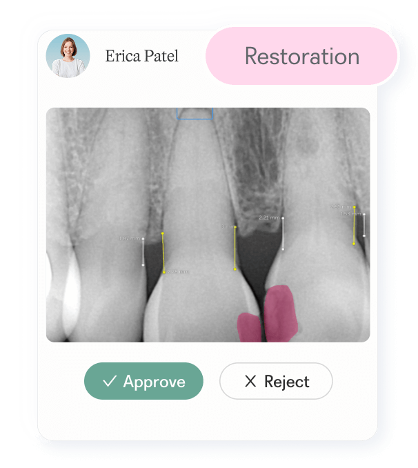 The easiest way to grow your practice? Deliver the care patients already need.  Pearl automatically reviews new and existing radiographs and care plans to surface untreated conditions—so your team can capture every opportunity.