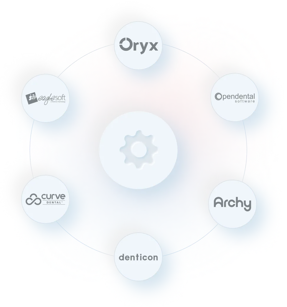 Supports native integration with: Open Dental, Dentrix, Eaglesoft, Carestack, Oryx, Curve, Denticon, and Software of Excellence’s EXACT (UK/APAC); Custom integrations available for additional systems if a public API or accessible data layer exists.